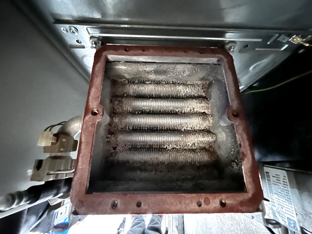 Ezt követően hozzáfértem az égőtérhez és a hőcserélőhöz. Az Ariston kondenzációs hőcserélők hatékonyak, de hajlamosak a lerakódásra, főleg, ha a kazán sokszor modulál alacsony teljesítményen. A hőcserélőt speciális tisztítószerrel átmostam, eltávolítva a lerakódott kondenzvíz-maratás nyomait és a finom kormot. A tisztítás után a felület ismét hatékonyan adja át a hőt.
